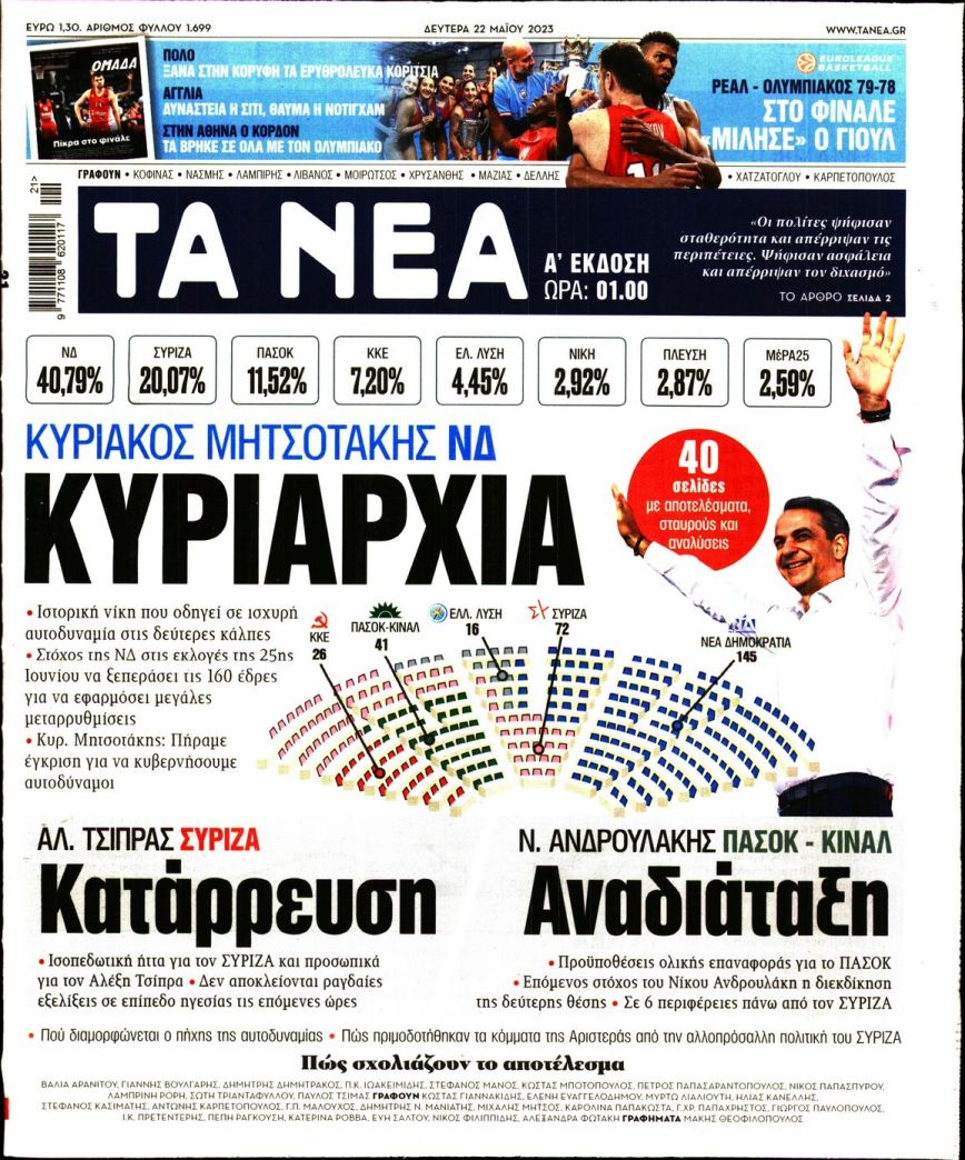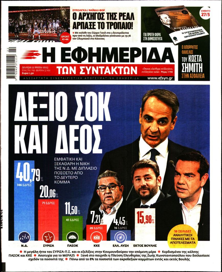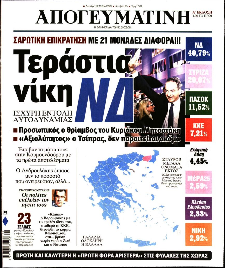 Δείτε εδώ όλα τα πρωτοσέλιδα των εφημερίδα σήμερα 22/5/2023