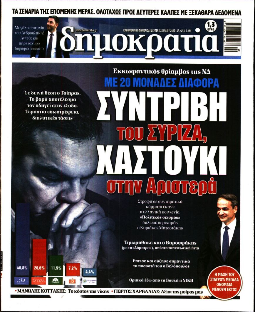 Για «συντριβή του ΣΥΡΙΖΑ, χαστούκι στην Αριστερά» κάνει λόγο η εφημερίδα Δημοκρατία.