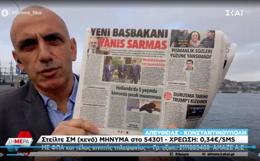 Στον τουρκικό Τύπο, σύμφωνα με τον Μανώλη Κωστίδη δεν έλλειψαν οι αναφορές για τις πολιτικές εξελίξεις στην Ελλάδα και την ορκωμοσία σήμερα του υπηρεσιακού πρωθυπουργού, Ιωάννη Σαρμά.