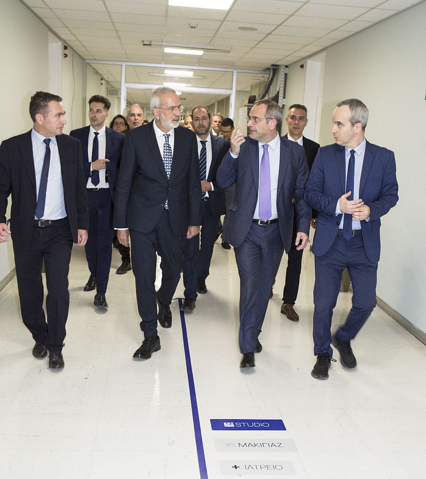 Ο κ. Ζούλας ξενάγησε τον Πρωθυπουργό στα νέα στούντιο και τις εγκαταστάσεις του ραδιομεγάρου, του παρουσίασε τις τεχνολογίες αιχμής και το αναπτυξιακό πρόγραμμα της δημόσιας επιχείρησης.