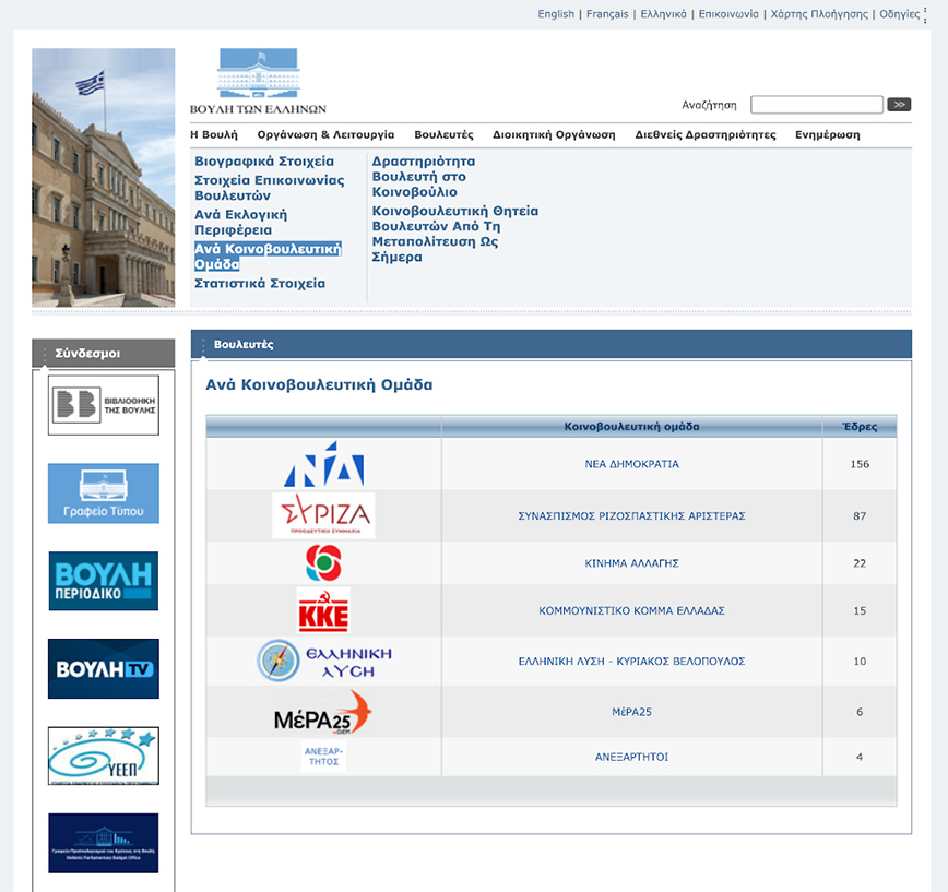 Εάν μπει κανείς στο σάιτ του (https://www.hellenicparliament.gr) και ανατρέξει στις Κοινοβουλευτικές Ομάδες, θα διαπιστώσει πως παραμένει ανενημέρωτο εδώ και αρκετές ημέρες, αφού αναφέρει ότι αυτή τη στιγμή στη Βουλή εκπροσωπούνται η Νέα Δημοκρατία με 156 βουλευτές, ο ΣΥΡΙΖΑ – Προοδευτική Συμμαχία με 87, το Κίνημα Αλλαγής με 22, το Κομμουνιστικό Κόμμα Ελλάδας με 15, η Ελληνική Λύση με 10, το ΜέΡΑ25 με 6 βουλευτές ενώ υπάρχουν και… 4 ανεξάρτητοι. Πρόκειται δηλαδή για τη σύνθεση του Κοινοβουλίου που υπήρχε πριν τις εκλογές του Μαΐου.