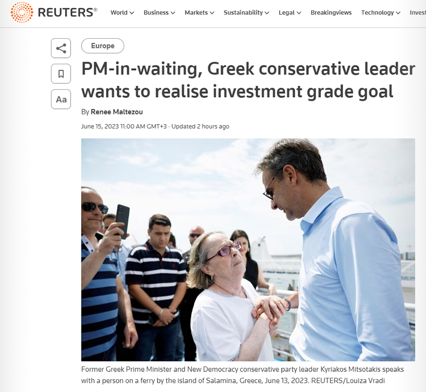 Το Reuters υπενθυμίζει ότι τα ελληνικά ομόλογα έχασαν την αξιολόγηση – που συνεπάγεται με πολύ χαμηλό κίνδυνο χρεοκοπίας – το 2010, ένα χρόνο μετά το ξέσπασμα της κρίσης χρέους της Ελλάδας, αναγκάζοντάς την χώρα να υπογράψει τρία προγράμματα διάσωσης έως το 2018. «Ο Κυριάκος Μητσοτάκης έχει δηλώσει ότι μόνο μια σταθερή κυβέρνηση μπορεί να εφαρμόσει αναγκαίες αλλά αντιλαϊκές μεταρρυθμίσεις που θα συνεχίσουν την πρόοδο της χώρας», σχολιάζει το δημοσίευμα.