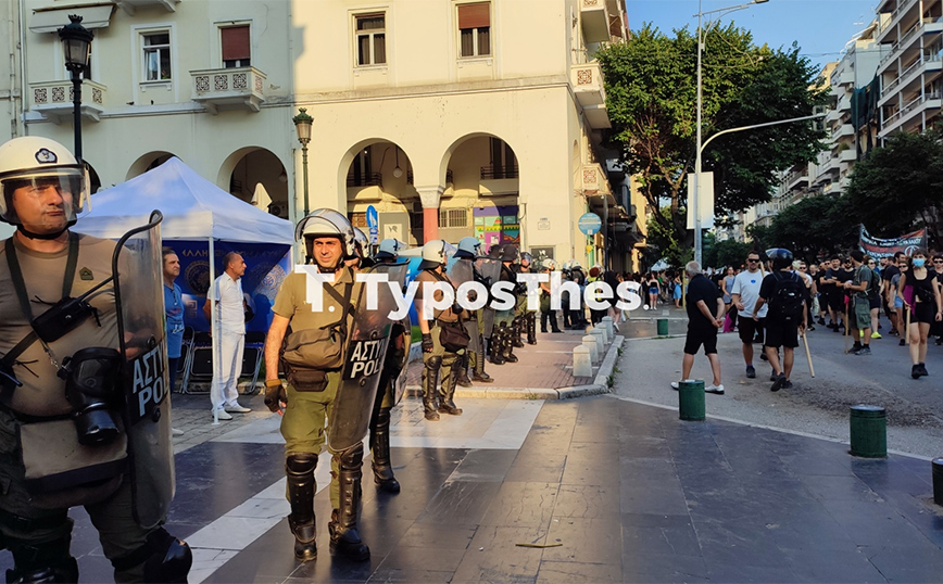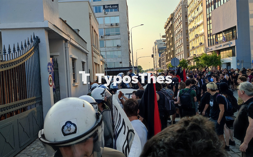 Η πορεία ξεκίνησε από το άγαλμα του Βενιζέλου στην Εγνατία, κινούμενη ανατολικά, ενώ είχε προηγηθεί ένταση όταν συγκεντρωμένοι απώθησαν μέλη του ΣΥΡΙΖΑ που ήθελαν να συμμετέχουν στην κινητοποίηση, σύμφωνα με το typosthes.gr.
