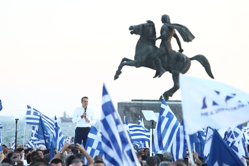 Το βήμα της Θεσσαλονίκης και η εξέδρα που είχε στηθεί στη Νέα Παραλία δίπλα στο Άγαλμα του Μεγάλου Αλεξάνδρου ήταν το ιδανικό σκηνικό για τον Κυριάκο Μητσοτάκη για να επιχειρήσει να επιτύχει τη μέγιστη δυνατή συσπείρωση των ψηφοφόρων του κόμματός του και να αποδομήσει με κάθε τρόπο κυρίως τα κομματίδια στα δεξιά της Νέας Δημοκρατίας. Ο πρόεδρος της ΝΔ ζήτησε με καθαρό λόγο από τους πολίτες που δεν ψήφισαν το κόμμα του να επαναξιολογήσουν την ψήφο τους έτσι ώστε να επιτύχει την ισχυρή αυτοδυναμία στις εκλογές της 25ης Ιουνίου.