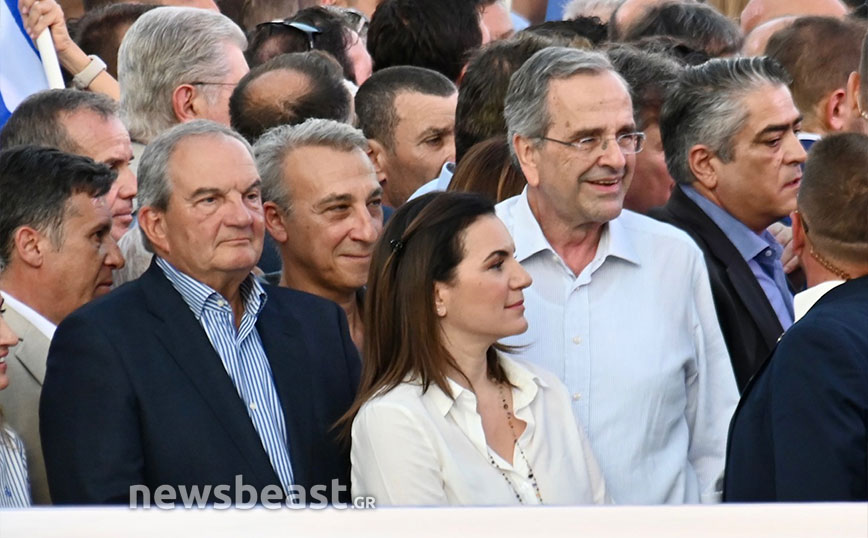 Στην τελευταία προεκλογική ομιλία του Κυριάκου Μητσοτάκη, βρέθηκαν οι δύο πρώην πρωθυπουργοί της παράταξης, Κώστας Καραμανλής και Αντώνης Σαμαράς, δίπλα στους οποίους ήταν και η υποψήφια βουλευτής Α’ Αθήνας, Όλγα Κεφαλογιάννη.