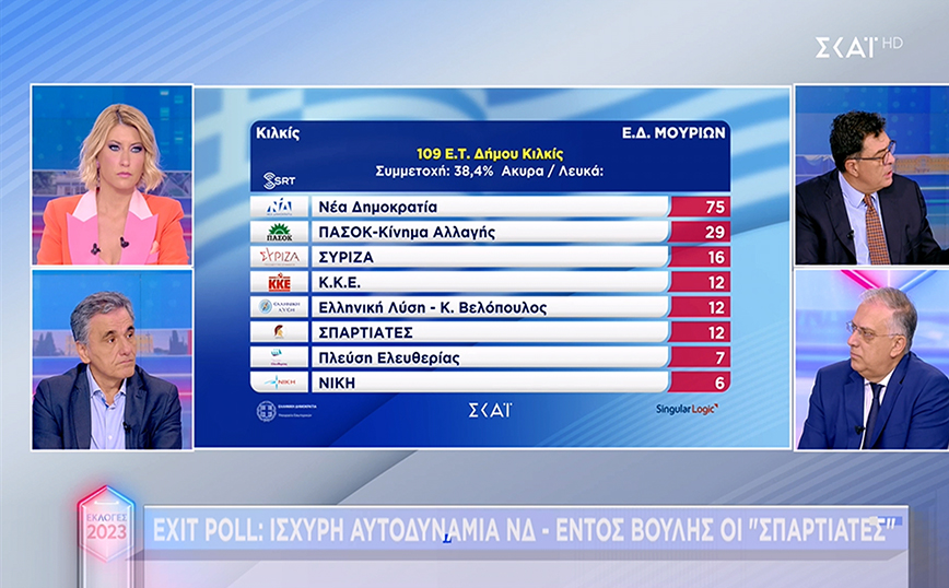 Ενδεικτικά στο 109 Ε.Τ του Δήμου Κιλκίς, η ΝΔ συγκεντρώνει 75 ψήφους, το ΠΑΣΟΚ 29, ο ΣΥΡΙΖΑ 16, το ΚΚΕ 12, η Ελληνική Λύση 12, οι Σπαρτιάτες 12, η Πλεύση Ελευθερίας 7 και η Νίκη 6.