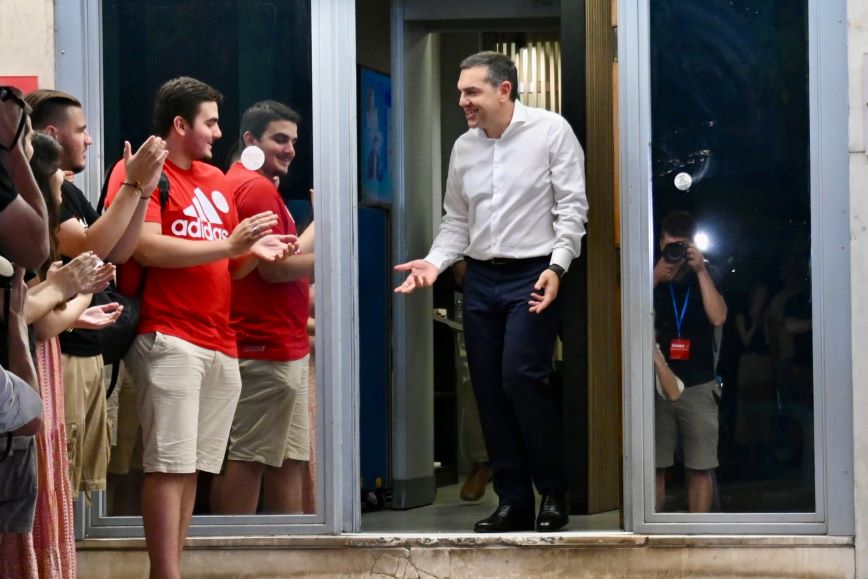 Ο Αλέξης Τσίπρας αναχώρησε από τα γραφεία του ΣΥΡΙΖΑ εν μέσω χειροκροτημάτων παρά την ήττα του κόμματος από την Νέα Δημοκρατία στην εκλογική αναμέτρηση. Ο πρόεδρος του ΣΥΡΙΖΑ εξερχόμενος από τα γραφεία του ΣΥΡΙΖΑ αντίκρισε ψηφοφόρους του να τον περιμένουν, οι οποίοι μόλις τον είδαν άρχισαν να τον χειροκροτούν και να τον αγκαλιάζουν.