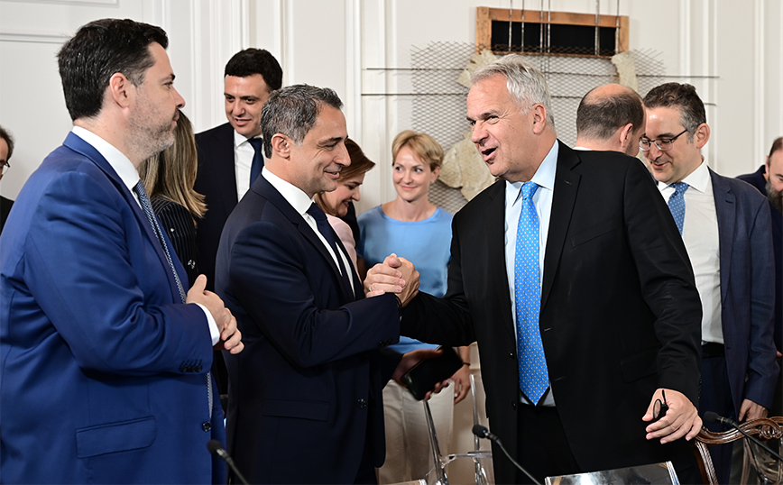 Τους μπλε φακέλους με τις προτεραιότητες κάθε υπουργείου παρέλαβαν σήμερα στο Μέγαρο Μαξίμου κατά τη διάρκεια του υπουργικού συμβουλίου τα μέλη της κυβέρνησης του Κυριάκου Μητσοτάκη. Τους μπλε φακέλους διαμόρφωσαν οι υπουργοί Επικρατείας Άκης Σκέρτσος και Σταύρος Παπασταύρου οι οποίοι και υπογράφουν το εισαγωγικό σημείωμα.