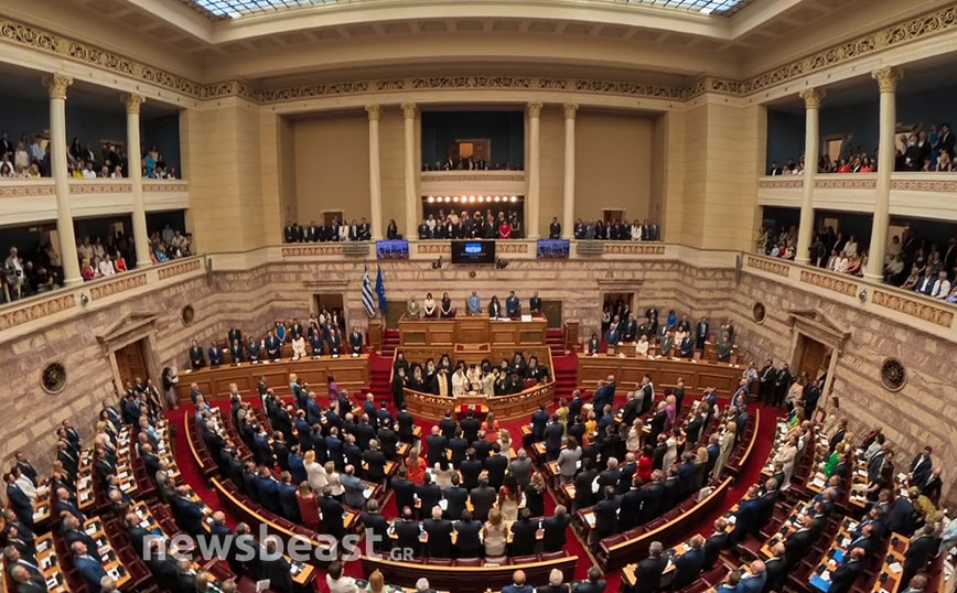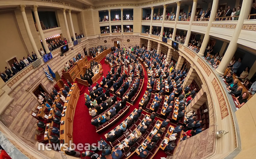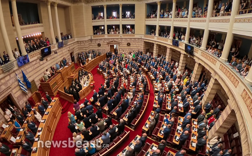Παρουσία της Προέδρου της Δημοκρατίας Κατερίνας Σακελλαροπούλου ορικίστηκε σήμερα η Βουλή των Ελλήνων της Κ’ Κοινοβουλευτικής Περιόδου Προεδρευομένης Δημοκρατίας, που προέκυψε από τις εθνικές εκλογές της 25ης Ιουνίου. Η σύγκληση της πανηγυρικής εναρκτήριας συνεδρίασης της νέας Βουλής ξεκίνησε με προεδρεύοντα τον Α’ Αντιπρόεδρο της προηγούμενης Βουλής Νικήτα Κακλαμάνη, συνεπικουρούμενος από τους τέσσερις προσωρινούς Γραμματείς, που είναι οι νεότεροι στην ηλικία βουλευτές των δύο πρώτων σε κοινοβουλευτική δύναμη κομμάτων.