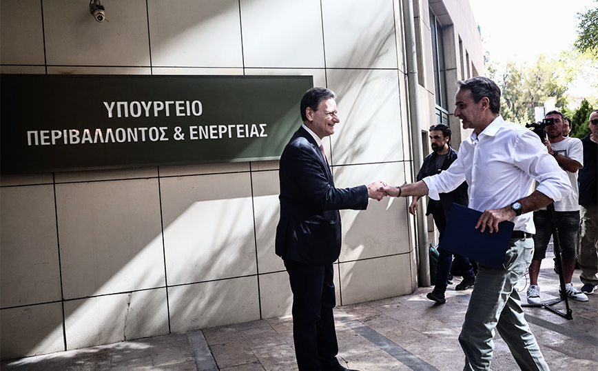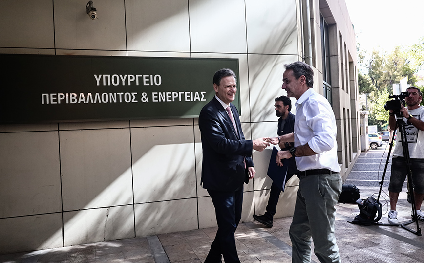 Ο πρωθυπουργός Κυριάκος Μητσοτάκης επισκέπτεται το υπουργείο Περιβάλλοντος και Ενέργειας προκειμένου να ενημερωθεί σχετικά με τα θέματα του υπουργείου.