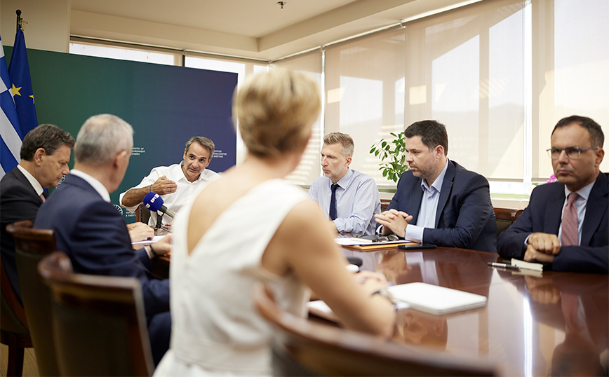 Αφού ευχαρίστησε τον υπουργό, τον υφυπουργό και την υφυπουργό για την πολύ ουσιαστική ημέρωση σήμερα στο υπουργείο Περιβάλλοντος και Ενέργειας, ο κ. Μητσοτάκης τόνισε πως «η πράσινη μετάβαση είναι ένα από τα μεγάλα στοιχήματα αυτής της διακυβέρνησης, να χτίσουμε πάνω στην πολύ σημαντική πρόοδο την οποία πετύχαμε την προηγούμενη τετραετία και να προσθέτουμε διαρκώς Ανανεώσιμες Πηγές Ενέργειας στο ενεργειακό μας μείγμα, προσαρμοζόμενοι πάντα και στην πρόοδο της τεχνολογίας, δίνοντας μεγαλύτερη έμφαση σε ζητήματα αποθήκευσης ενέργειας, ανοίγοντας καινούριες αγορές, όπως η αγορά των αιολικών στη θάλασσα.