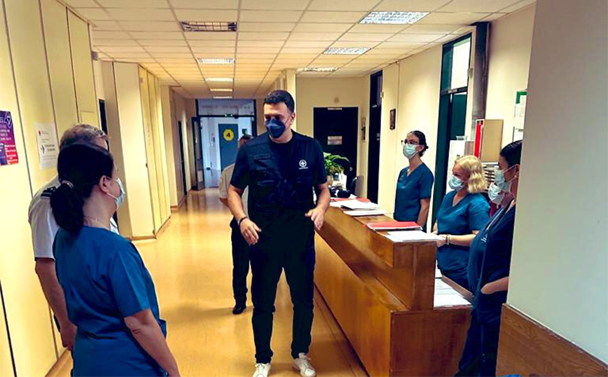Στο νοσοκομείο για να επισκεφθεί πυροσβέστη που υπέστη έμφραγμα του μυοκαρδίου κατά τη διάρκεια της μάχης με τις φλόγες βρέθηκε ο υπουργός Κλιματικής Κρίσης και Πολιτικής Προστασίας, Βασίλης Κικίλιας.