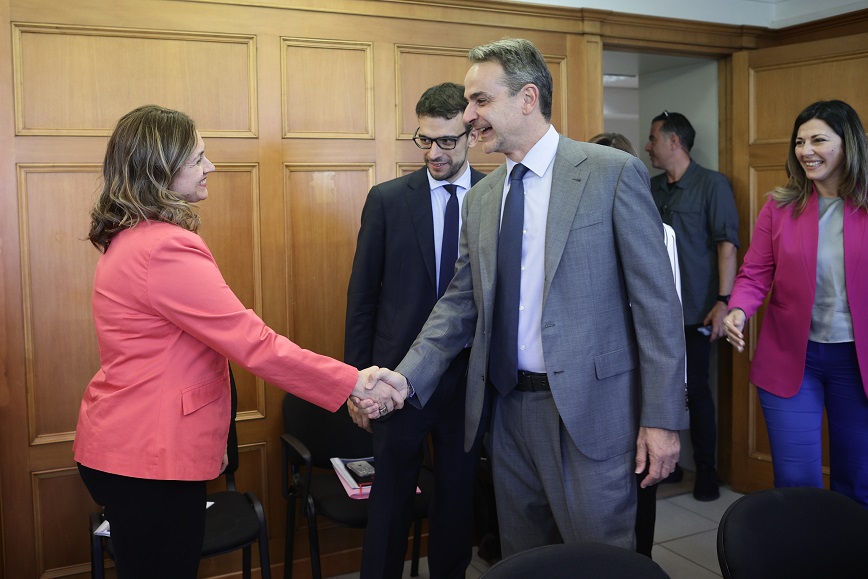 Ο Κυριάκος Μητσοτάκης επισκέφθηκε το νεοσύστατο υπουργείο Κοινωνικής Συνοχής και Οικογένειας και συναντήθηκε με την αρμόδια υπουργό Σοφία Ζαχαράκη.