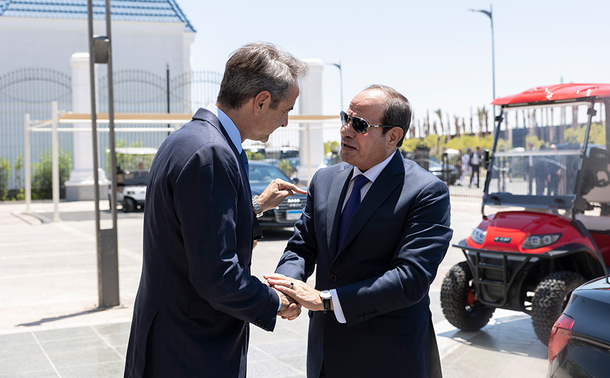 Κυριάκος Μητσοτάκης: Σύντομη αλλά παραγωγική. Όπως γνωρίζετε με τον Πρόεδρο Sisi έχω μια εξαιρετική προσωπική σχέση και είμαι εδώ για να επαναβεβαιώσω το στρατηγικό βάθος της σχέσης Ελλάδος και Αιγύπτου και να ευχαριστήσω και την Αίγυπτο για την κίνηση την οποία έκαναν να στηρίξουν την πατρίδα μας αποστέλλοντας στρατιωτικά ελικόπτερα, να μας βοηθήσουν στην καταπολέμηση των δασικών πυρκαγιών.