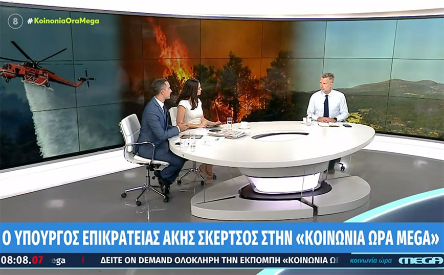 Σε συνέντευξή τους στην εκπομπή «Κοινωνία Ώρα MEGA» είπε: «Πρέπει να απαντήσουμε στους πολίτες τι συμβαίνει στην Ελλάδα αλλά όχι μόνο στην Ελλάδα γιατί όλος ο κόσμος καίγεται. Βλέπουμε ένα φαινόμενο της κλιματικής κρίσης που ταλαιπωρεί κάθε καλοκαίρι λόγω των συνθηκών και δημιουργείται ένα ασφυκτικό πλαίσιο διαχείρισης των πυρκαγιών».