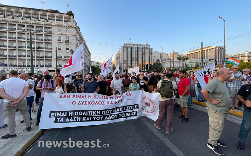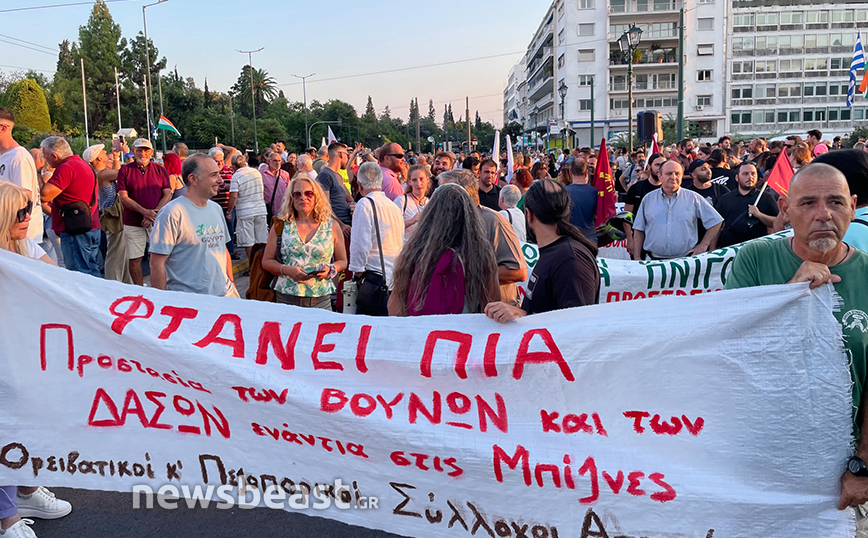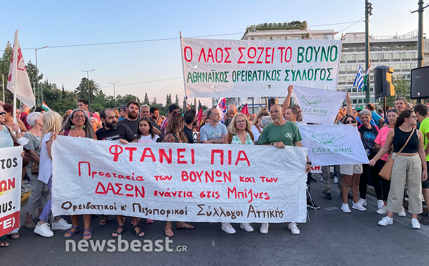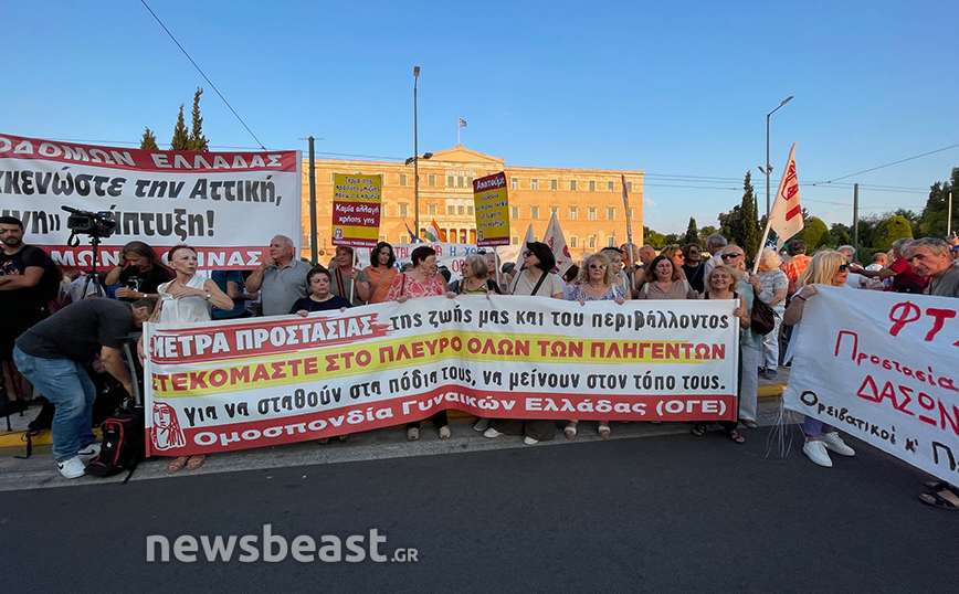 Συλλαλητήριο στο Σύνταγμα για «την προστασία της ζωής του λαού και του δασικού πλούτου» μετά τις φωτιές σε Αττική, Έβρο, Εύβοια και Βοιωτία πραγματοποιούν συνδικάτα και σωματεία.