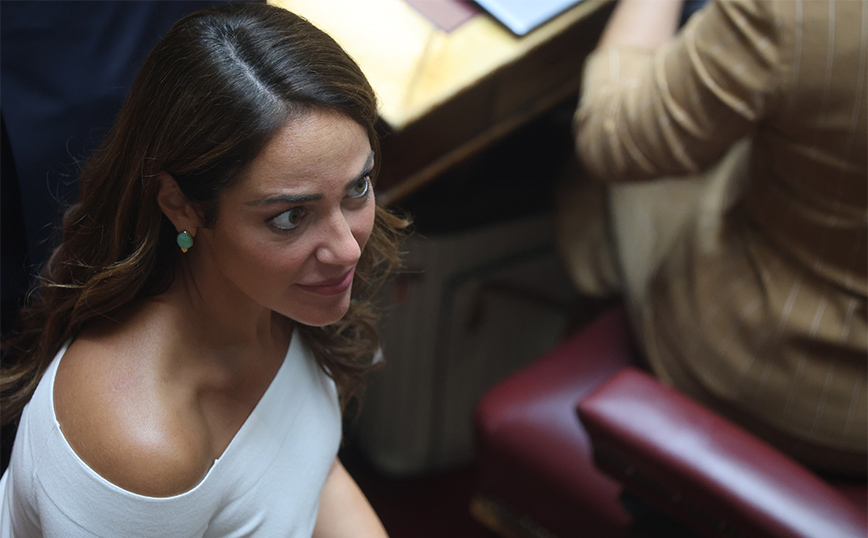 Τα φλας τράβηξε η υφυπουργός Παιδείας Δόμνα Μιχαηλίδου, η οποία κατέβηκε και στα βουλευτικά έδρανα συμμετέχοντας σε πηγαδάκι.