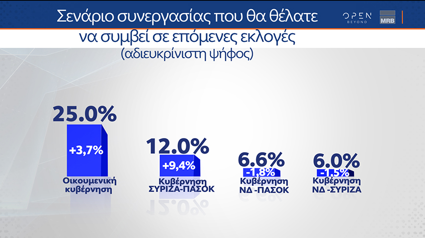 Για την κυβέρνηση που προτιμούν οι αναποφάσιστοι, τα ποσοστά είναι τα ακόλουθα: