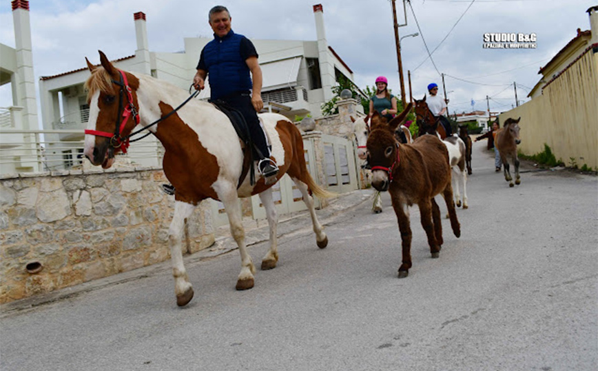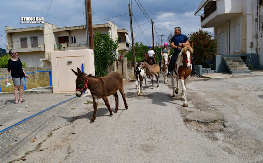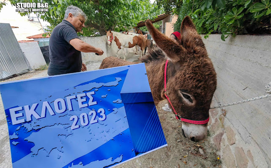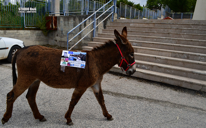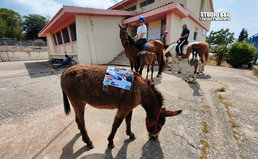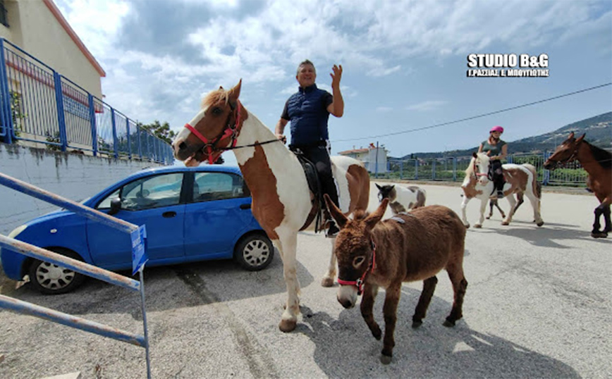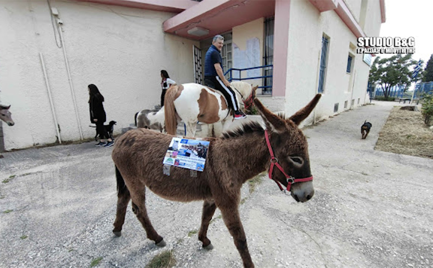 Καβάλα στο άλογο και με τη συνοδεία ενός μικρού γαϊδουριού, προσήλθε στο εκλογικό τμήμα του Ειδικού Γυμνάσιου Αργολίδας, στο Ναύπλιο, ένας 50χρονος αγρότης, για να ψηφίσει στις εκλογές.