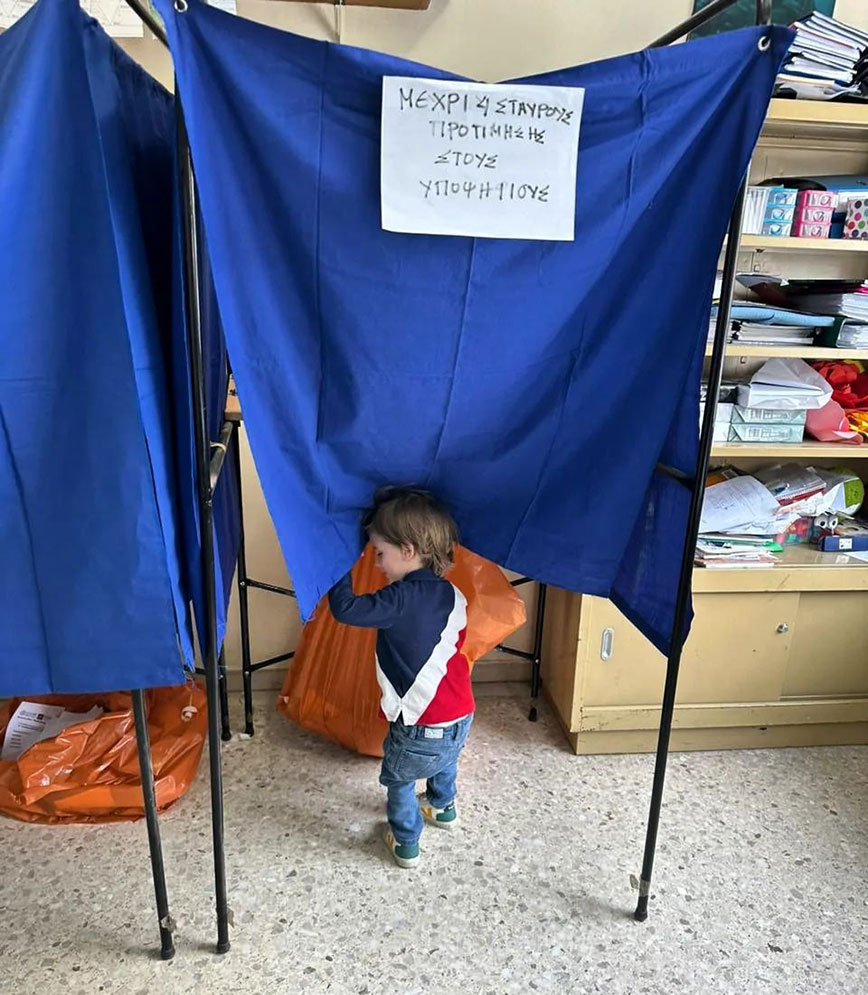Ο γιος της Νίκης Λυμπεράκη έκλεψε την παράσταση στην εκλογική κάλπη…