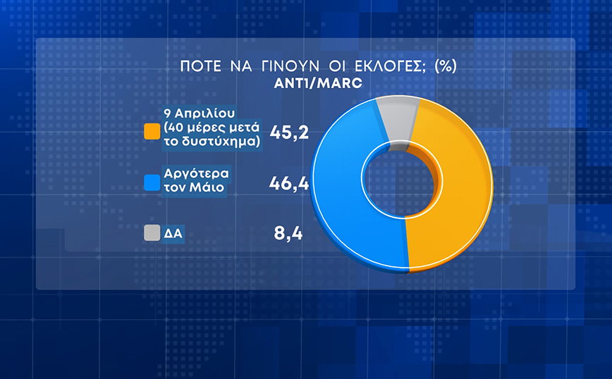 - Στις 9 Απριλίου, δηλαδή 40 ημέρες μετά την τραγωδία των Τεμπών, 45,2%