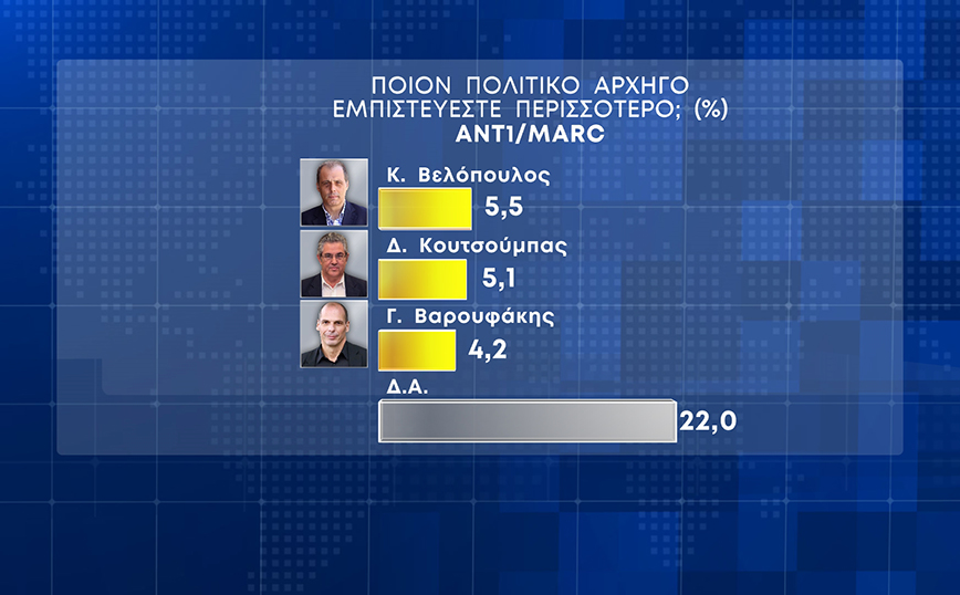 Οι ψηφοφόροι ρωτήθηκαν ποιον από τους πολιτικούς αρχηγούς εμπιστεύονται περισσότερο, με τα ποσοστά να είναι τα εξής: