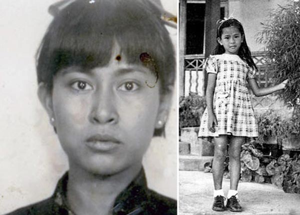 Η μητέρα της, Khin Kyi, έγινε αργότερα πρέσβειρα της Βιρμανίας στην Ινδία (1960). Η Αούνγκ Σαν μεγαλώνει λοιπόν με τη μητέρα και τους δύο μεγαλύτερους αδελφούς της, αν και θα έχανε τον έναν από πνιγμό σε νεαρή ηλικία. Ολοκληρώνει τις σχολικές της υποχρεώσεις, την ίδια στιγμή που έρχεται σε επαφή με ανθρώπους από τελείως διαφορετικά κοινωνικο-πολιτισμικά περιβάλλοντα, λόγω της βαριάς ιστορίας της οικογένειας.