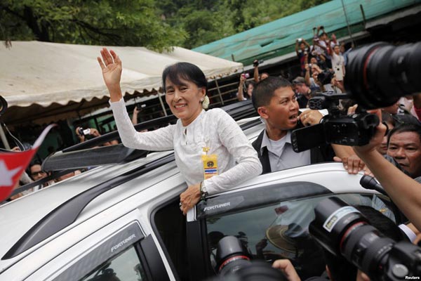 Τον Νοέμβριο του 2011, το δημοκρατικό κόμμα NLD συγκροτείται και πάλι ως πολιτικός φορέας και τον Ιανουάριο του 2012 η Αούνγκ Σαν αποφασίζει να κατέβει υποψήφιος βουλευτής. Την 1η Απριλίου 2012, έπειτα από εξαντλητική πολιτική καμπάνια και εξοντωτικές για την ίδια περιοδείες, η Σαν εκλέγεται μέλος της βιρμανικής βουλής!