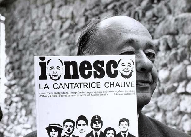 Η κοινοτοπία της ύπαρξης αλλά και η ανθρώπινη μοναξιά μπήκαν από νωρίς στο συγγραφικό στόχαστρο του κορυφαίου θεατράνθρωπου, που βάλθηκε να διακωμωδήσει τραγικά το βαρετό της ζωής και την ελαφρότητα της καθημερινότητας. Καθώς «είναι αφύσικο πράγμα να ζεις», όπως δήλωνε εμφατικά ο πολυγραφότατος Ιονέσκο, μετουσίωσε τις αναζητήσεις του στη ζωή σε θεατρικά έργα, πάντα εκεί στην κόψη του παραλόγου με τη λογική, «την τρέλα των δυνατών», όπως την ήθελε ο ανανεωτής δραματουργός. Κι αν περίφημες ατάκες από θεατρικά του έργα, όπως ότι «µπορείς πάντα να προβλέψεις τα γεγονότα αφού έχουν γίνει» και «η κοινωνική πρόοδος είναι σίγουρα καλύτερη µε λίγη ζάχαρη», δεν βγάζουν νόημα εκτός του παράλογου πλαισίου, είναι γιατί έτσι ακριβώς τις ήθελε ο επίσηµος εκφραστής του: να αναδεικνύουν το αδιέξοδο και μάταιο της επικοινωνίας και -µέσω αυτής- το ανούσιο και το παράλογο της ίδιας της ζωής! Εξάλλου, «δεν είναι η απάντηση που μας διαφωτίζει, αλλά η ερώτηση», ισχυριζόταν ο επαναστάτης αυτός της δραματουργίας, ο συνιδρυτής του Θεάτρου του Παραλόγου (µαζί µε τους Σάµιουελ Μπέκετ, Ζαν Ζενέ και μερικούς ακόμη πειραματικούς συγγραφείς της δεκαετίας του ’50), ο άνθρωπος που ανανέωσε τη σύγχρονη θεατρική γραφή και πράξη, μπολιάζοντάς τη με γλυκόπικρο χιούμορ, σαρκασμό, γελοιότητα αλλά και τη μοναδική αίσθηση του μάταιου, του τίποτα, του μηδέν και του κενού. Κάθε εξουσία αποδομήθηκε στο έργο του Ιονέσκο, το οποίο αποτύπωσε το ιδιαίτερο μεταπολεμικό κλίμα της δεκαετίας του ’50, δίνοντας νέα ώθηση στη θεατρική τέχνη. Κι όσο παράλογο κι αν θα του ακουγόταν, σήμερα περιλαμβάνεται κι αυτός στους κλασικούς του θεάτρου: οι παράλογες καταστάσεις που δημιουργούν μια ταυτοχρόνως κωμική και γκροτέσκα ατμόσφαιρα είναι συνώνυμο της θεατρικής του πένας… Πρώτα χρόνια