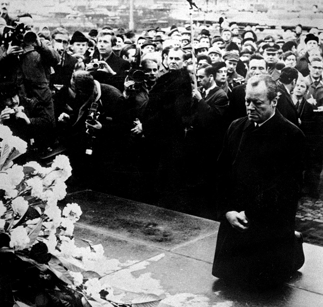 Δηλωτική της ενωτικής του στάσης, η επίσκεψή του στη Βαρσοβία στις 7 Δεκεμβρίου 1970, που αποτέλεσε σημείο καμπής για την εξομάλυνση των σχέσεων Γερμανίας-Πολωνίας: ο καγκελάριος γονατίζει μπροστά στο μνημείο για τους πεσόντες του γκέτο της Βαρσοβίας, εκφράζοντας ιδανικά τις προθέσεις της μεταπολεμικής Γερμανίας έναντι των γειτονικών της χωρών αλλά και την αναγνώριση της ναζιστικής θηριωδίας.