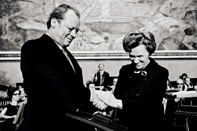 Η ενωτική ματιά του οραματιστή καγκελάριου αναγνωρίζεται την επόμενη χρονιά παγκοσμίως, με την επιτροπή των Βραβείων Νόμπελ να τον τιμά με το Νόμπελ Ειρήνης το 1971.