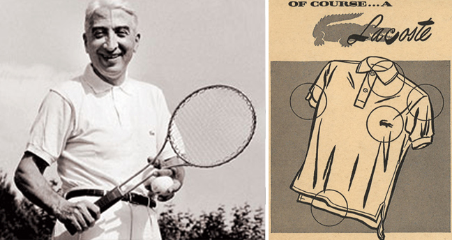Έπειτα λοιπόν από ταξίδι στο Λονδίνο, ο Λακόστ αποφάσισε να αντικαταστήσει τα μακρυμάνικα μπλουζάκια με μια νέα σειρά πιο άνετων, που απορροφούσαν ταυτοχρόνως τον ιδρώτα και αγκάλιαζαν το σώμα. Τα νέα μπλουζάκια για το τένις, το γκολφ και την ιστιοπλοΐα ήταν πιο μικρά και με κοντύτερα μανίκια, με τη φίρμα που ίδρυσε ο περίφημος γάλλος τενίστας όταν αποσύρθηκε από τον επαγγελματικό αθλητισμό το 1930 να γίνει έτσι μια από τις πλέον επιτυχημένες παγκοσμίως, κάνοντας το κροκοδειλάκι ένα από τα πιο αναγνωρίσιμα trademark της αγοράς μέχρι και τις μέρες μας.