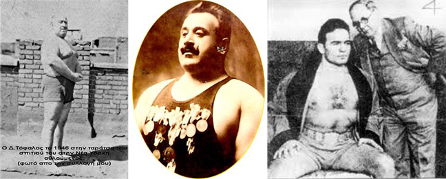 Και πρόβαλεν ο Τόφαλος / στων αθλητών τ’ ασκέρια / κ’ είχεν βραχίονας και μυς / που τους εβλέπαμε και μεις / και το σταυρό μας κάναμε / και με τα δυό μας χέρια