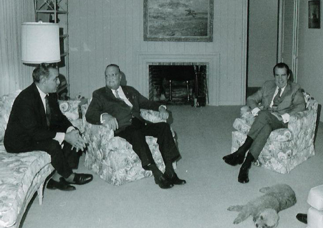Χαρακτηριστικό είναι εδώ το γεγονός ότι όταν πέθανε ο Χούβερ, ο πρόεδρος Νίξον τον χαρακτήρισε δημοσίως ως «έναν από τους γίγαντες … ένα εθνικό σύμβολο κουράγιου, πατριωτισμού και γρανιτένιας ειλικρίνειας και εντιμότητας», παραγγέλνοντας ταυτοχρόνως οι σημαίες να κυματίζουν μεσίστιες. Κατ’ ιδίαν ωστόσο, όταν έμαθε τα νέα για τον θάνατο του αφεντικού του FBI, δεν μάσησε τα λόγια του: «Ιησού Χριστέ! Αυτό το παλιοκορόιδο»! Κι αυτό γιατί μήνες πρωτύτερα είχε αποπειραθεί να πείσει τον ηλικιωμένο πια γενικό κουμανταδόρο να παραιτηθεί από τη θέση του: «Έχουμε στα χέρια μας έναν άντρα που μπορεί να γκρεμίσει τον ναό του μαζί του, περιλαμβανομένου εμού», είχε πει στους στενούς του συνεργάτες ο Νίξον.