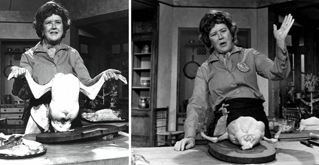 Είμαστε στα 1962 και αυτή ήταν πράγματι μια από τις πρώτες μαγειρικές εκπομπές της Αμερικής. Η Τζούλια ετοιμάζει στον αέρα, με τον ευθύ της τρόπο και το πηγαίο της χιούμορ, μια ομελέτα και χωρίς να το γνωρίζει γράφει τηλεοπτική ιστορία!