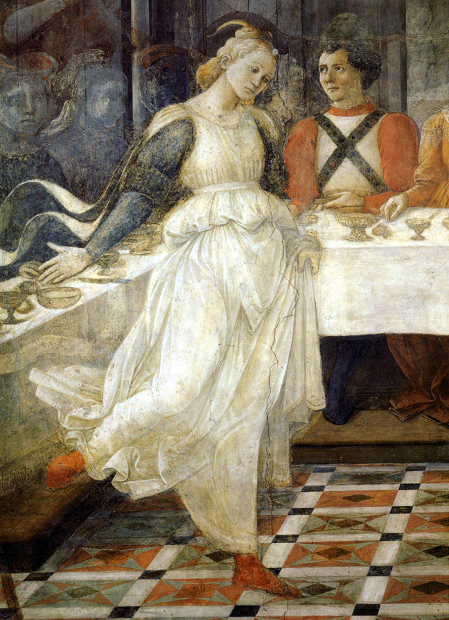 Τότε ήταν που η Ηρωδιάδα συνέλαβε το δόλιο σχέδιο για την εξόντωση του Βαπτιστή, ζητώντας από τη νεαρή της κόρη να ξετρελάνει τον Αντύπα χορεύοντάς του αισθησιακά. Είμαστε στα 32 μ.Χ., λίγο πριν από το εβραϊκό Πάσχα, όταν ο Ηρώδης Αντύπας παρέθεσε εορταστικό δείπνο στην Τιβεριάδα για τα γενέθλιά του. Η πριγκίπισσα Σαλώμη προσφέρθηκε να λικνίσει τα κάλλη της για τα μάτια του θετού της πατέρα και της υψηλόβαθμης ομήγυρης, αποσπώντας όμως πρώτα την υπόσχεση του τετράρχου της Γαλιλαίας ότι θα ικανοποιούσε την επιθυμία της.
