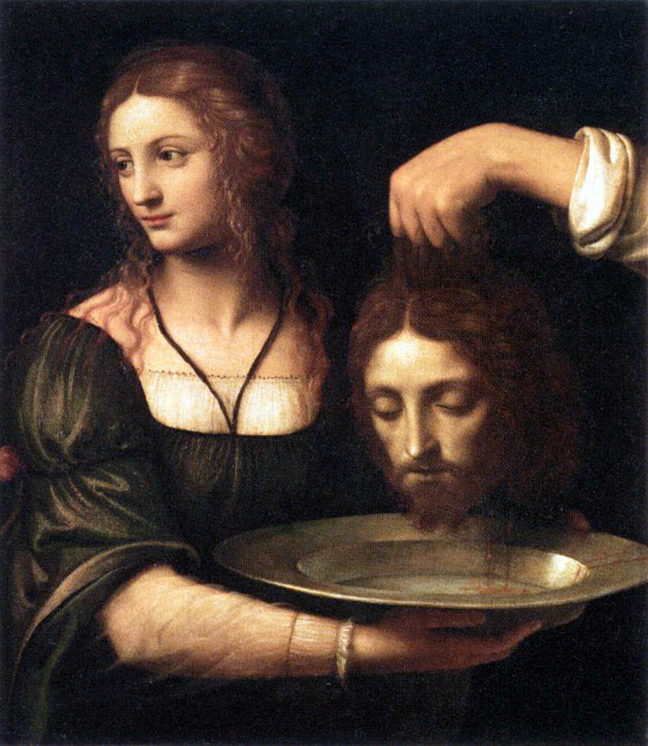Παγιδευμένος στα θέλγητρά της, ο Ηρώδης της υποσχέθηκε ό,τι του ζητούσε, ακόμα και το μισό του βασίλειο! Εκείνη όμως, δασκαλεμένη από τη ραδιούργα μητέρα της, ζήτησε αντιθέτως να της φέρουν «επί πίνακι την κεφαλήν Ιωάννου του Βαπτιστού». Ο τέτραρχος κατάλαβε την πλεκτάνη που είχαν εξυφάνει εναντίον του, αν και πλέον ήταν πολύ αργά. Όπως μας λένε οι Ματθαίος (14:1-12) και Μάρκος (6:14-29): «Λαβαίνοντας υπόψη τους όρκους του και εκείνους που πλάγιαζαν μπροστά στο τραπέζι με αυτόν, διέταξε να της δοθεί· και έστειλε να αποκεφαλίσουν τον Ιωάννη στη φυλακή. Και έφεραν το κεφάλι του σε έναν δίσκο και το έδωσαν στο κορίτσι, και αυτή το έφερε στη μητέρα της». Ο Ιωάννης, όπως αναφέρει ο Ματθαίος (14:3-12), βαπτίστηκε στο αίμα του μαρτυρίου του…
