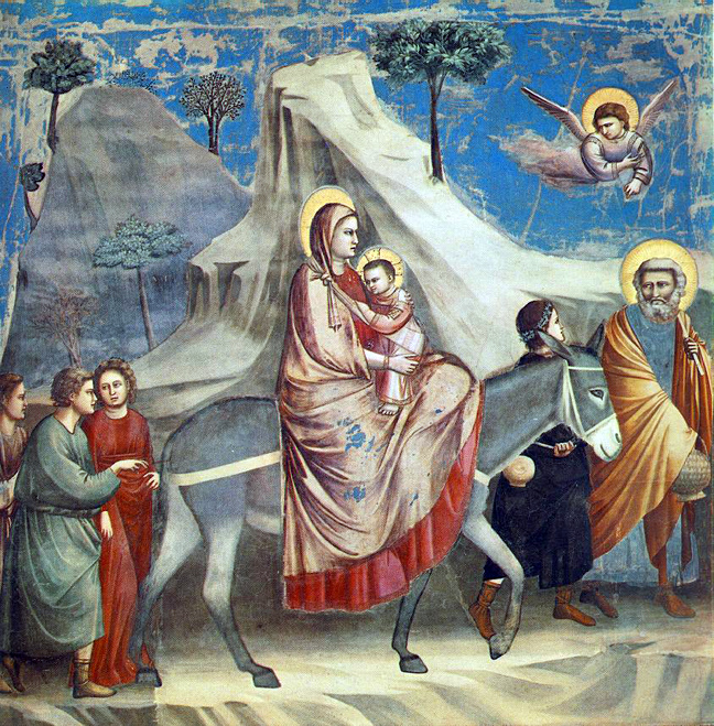 Μετά τη γέννηση του Ιησού στη Βηθλεέμ, η αγία οικογένεια παρέμεινε στην πόλη, μέχρι να εμφανιστεί τουλάχιστον και πάλι στον ύπνο του Ιωσήφ ο άγγελος και να του καταμηνύσει ότι η ζωή του θείου βρέφους ήταν σε κίνδυνο από τον μανιασμένο Ηρώδη. Τον πρόσταξε να διαφύγουν στην Αίγυπτο και ο πάντοτε θεοσεβής Ιωσήφ υπάκουσε αμέσως, παίρνοντας τους προστατευόμενούς του και το βιος του και φεύγοντας νύχτα από τη Γαλιλαία.