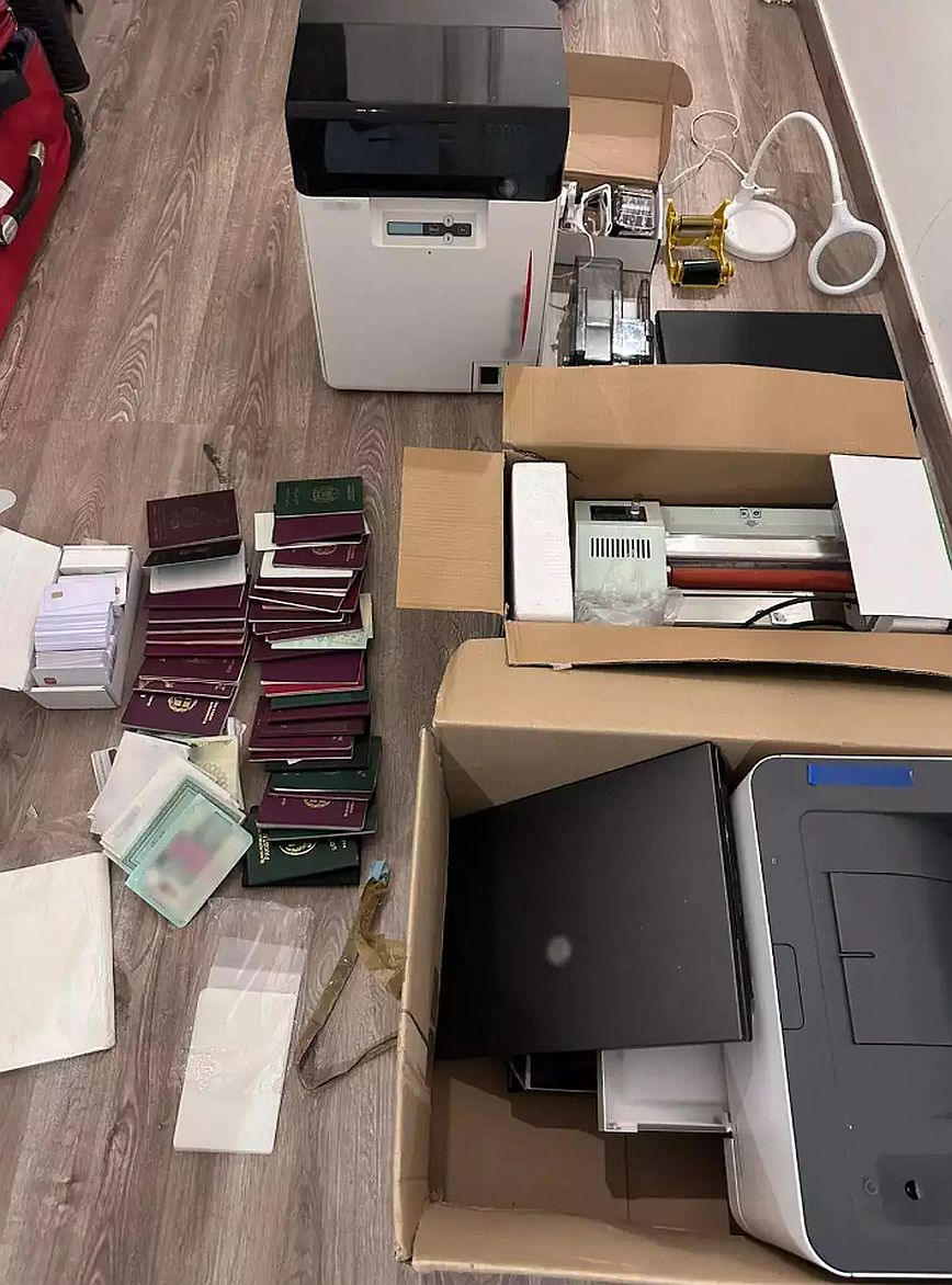 Μάλιστα σε ένα από τας σπίτια των δραστών βρέθηκε πλήρως εξοπλισμένο εργαστήριο που έφτιαχνε πλαστά έγγραφα, ενώ παράλληλα βρέθηκαν και κατασχέθηκαν: