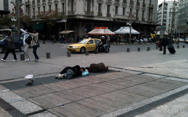 Συχνή εικόνα αλλά αυτό δε σημαίνει ότι πρέπει να μας αφήνει αδιάφορους. Άστεγοι και ναρκομανείς περιφέρονται στην Ομόνοια σαν φαντάσματα.