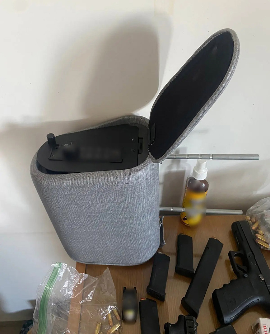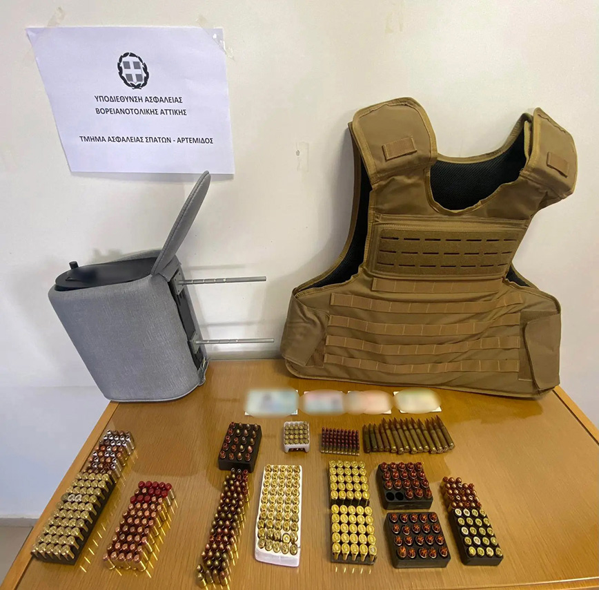 Πιο αναλυτικά, σε έρευνα που πραγματοποιήθηκε, παρουσία δικαστικού λειτουργού, στην οικία του 22χρονου βρέθηκαν και κατασχέθηκαν: 8 πιστόλια με 12 γεμιστήρες, 3 φακοί πιστολιών, πλαστικό εξάρτημα όπλου, εξάρτημα όπλου με ελατήριο, ολισθήρα με κάννη, κάννη, 475 φυσίγγια διαφορετικών διαμετρημάτων, αλεξίσφαιρο γιλέκο με βαλλιστική πλάκα, 3 δελτία Αστυνομικών Ταυτοτήτων, τα οποία φέρεται να έχουν εκδοθεί από ελληνικές, βουλγαρικές και κροατικές Αρχές, καθώς και άδεια ικανότητας οδήγησης βουλγαρικών αρχών, έγγραφα τα οποία ήταν εμφανώς πλαστά.