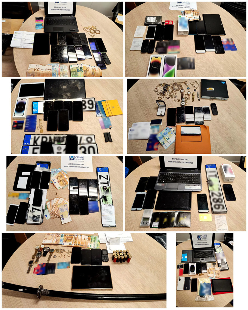 Σε έρευνες που πραγματοποιήθηκαν σε οικίες, παρουσία δικαστικών λειτουργών, συνολικά βρέθηκαν και κατασχέθηκαν: