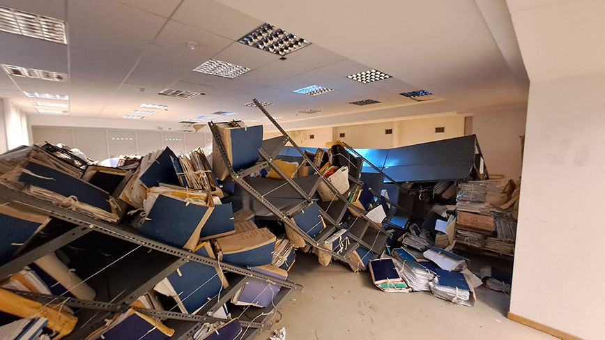 «”Μπορούσαμε να είχαμε νεκρό”, αυτή η φράση ήταν στο στόμα των συναδέλφων στο Ποινικό Μητρώο της Εισαγγελίας Πρωτοδικών Αθήνας, μετά την κατάρρευση – πτώση μεταλλικών ραφιών τύπου dexion που καταπλάκωσαν ένα συνάδελφο και έναν εργαζόμενο μεταφορικής εταιρείας. Συγκεκριμένα, σήμερα το πρωί, κατά τη διάρκεια της φόρτωσης των ραφιών με δικογραφίες, αυτά κατέρρευσαν με αποτέλεσμα να εγκλωβιστεί κάτω από το βάρος των δικογραφιών και των σίδερων, ο συνάδελφος (που τραυματίστηκε στην πλάτη και στα πόδια) και ο εργαζόμενος της μεταφορικής εταιρείας. Το μέγεθος της επικινδυνότητας του συμβάντος αποδεικνύεται απ’ το γεγονός ότι για τον απεγκλωβισμό τους χρειάστηκε η βοήθεια – παρέμβαση πολιτών και συναδέλφων που βρίσκονταν στον χώρο. Κοινώς, από καθαρή τύχη αποφύγαμε τα χειρότερα! Εκφράζουμε τη συμπαράστασή μας στους δύο εργαζόμενους και τους ευχόμαστε “περαστικά”.