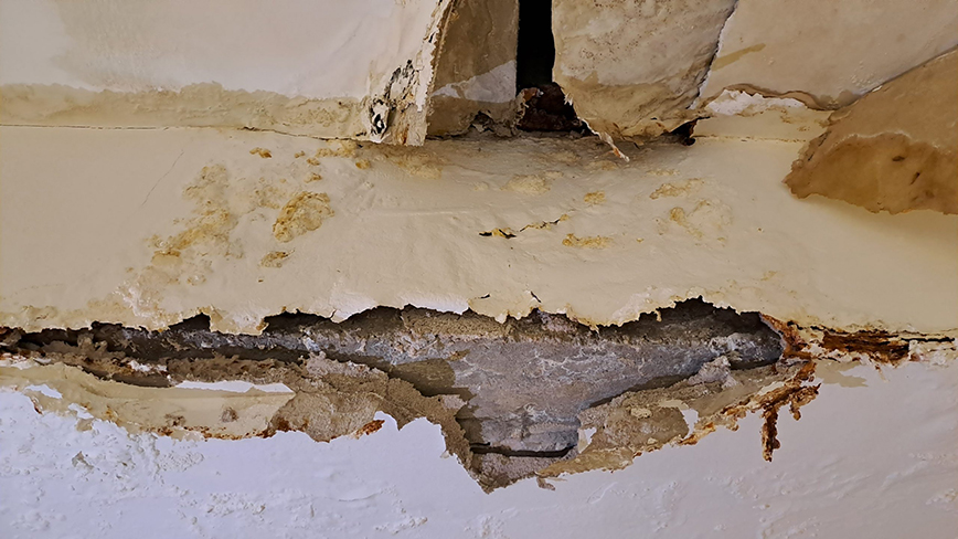 Για πόσο ακόμα θα στηριζόμαστε στην τύχη; Λίγες μέρες πριν, στις 23.10.2023 – κατά τυχαίο τρόπο, λόγω πτώσης τμήματος της ψευδοροφής στο ακροατήριο του Γ’ Αυτοφώρου Μονομελούς Πλημμελειοδικείου στο Πρωτοδικείο της Αθήνας – αποκαλύφθηκε μια ρωγμή στο κτήριο 2. Στο σημείο έσπευσαν μέλη του ΔΣ του Συλλόγου μαζί με συναδέλφους του Τμήματος Προμηθειών και μηχανικός που βρισκόταν στο χώρο του Πρωτοδικείου για την εκτέλεση άλλου έργου. Ο μηχανικός βλέποντας τη ρωγμή ανέφερε: «Πρέπει να το δει στατικός».