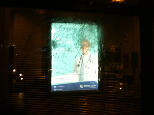 Ομάδα κουκουλοφόρων που συμμετείχε στην πορεία διαμαρτυρίας για το θάνατο της ανήλικης στο Μενίδι έσπασε με πετώντας πέτρες τη βιτρίνα της «Attica bank», που βρίσκεται επί της οδού Κωνσταντινουπόλεως καθώς και το ΑΤΜ της Αγροτικής επί της Οδυσσέως. Νωρίτερα έβαλαν φωτιά σε σακούλες σκουπιδιών στο σημείο, όπου άφησε την τελευταία της πνοή η ανήλικη.