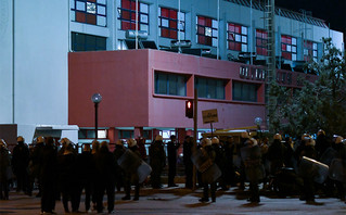 Ήταν λίγο πριν από τις 22:00 χθες το βράδυ, όταν περίπου 150 οπαδοί βγήκαν από το κλειστό γυμναστήριο και πέταξαν πέτρες, μολότοφ και φωτοβολίδες προς τις αστυνομικές δυνάμεις, οι οποίες απάντησαν με τη χρήση χημικών.