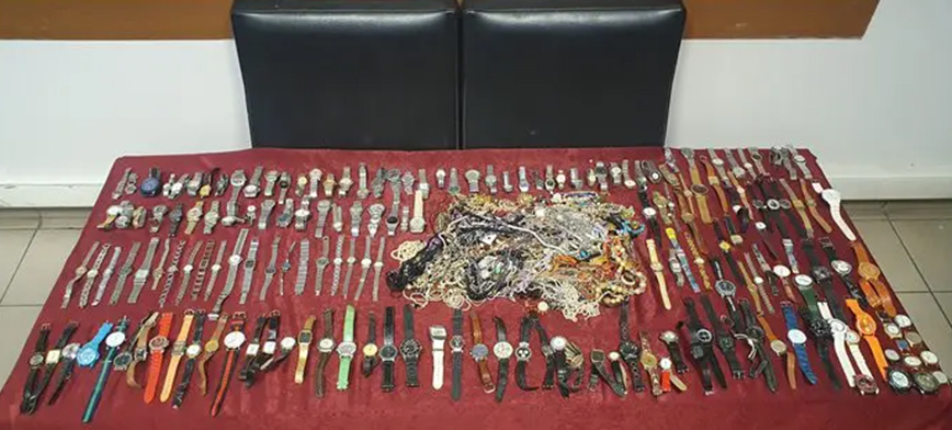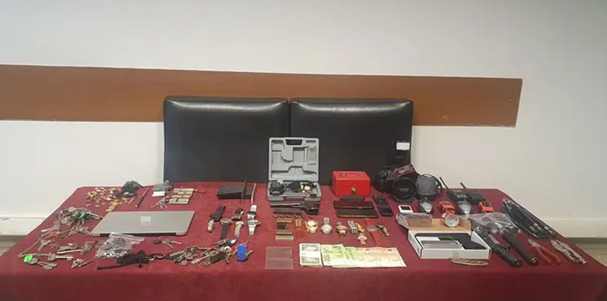 Τα πέντε εμπλεκόμενα άτομα συνελήφθησαν στη διάρκεια αστυνομικής επιχείρησης, που πραγματοποιήθηκε χθες το πρωί σε διάφορες περιοχές της Θεσσαλονίκης. Στα σπίτια τους και στο «εργαστήριο» εντοπίστηκαν και κατασχέθηκαν το χρηματικό ποσό των 14.455 ευρώ και 100 δολάρια ΗΠΑ, πλήθος ρολογιών, κοσμημάτων, κινητών τηλεφώνων και ηλεκτρονικών συσκευών, ένα χρηματοκιβώτιο, δύο φορητοί πομποδέκτες, πλήθος διαρρηκτικών εργαλείων, όπλα με φυσίγγια, περούκες.