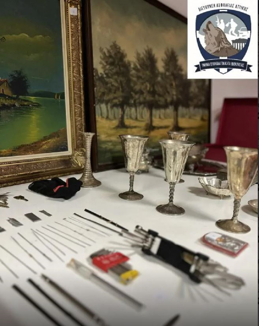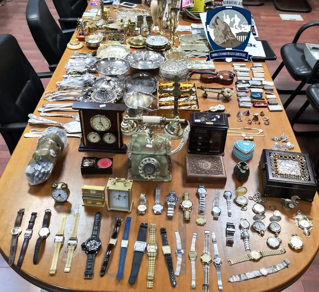 Κατασχέθηκαν πιστόλι, περίστροφο, πλήθος φυσιγγίων, πιστόλι ρίψης φωτοβολίδων, πλήθος διαρρηκτικών εργαλείων, κλειδιών, κλειδαριών και αφαλών θυρών, ηλεκτρονικές συσκευές, πίνακες ζωγραφικής, θήκες κοσμημάτων, ρολόγια χειρός και τσέπης κ.α. Από την εγκληματική τους δράση αποκόμισαν πάνω από 200.000 ευρώ, ενώ ερευνάται η συμμετοχή τους σε πλήθος εγκληματικών πράξεων.