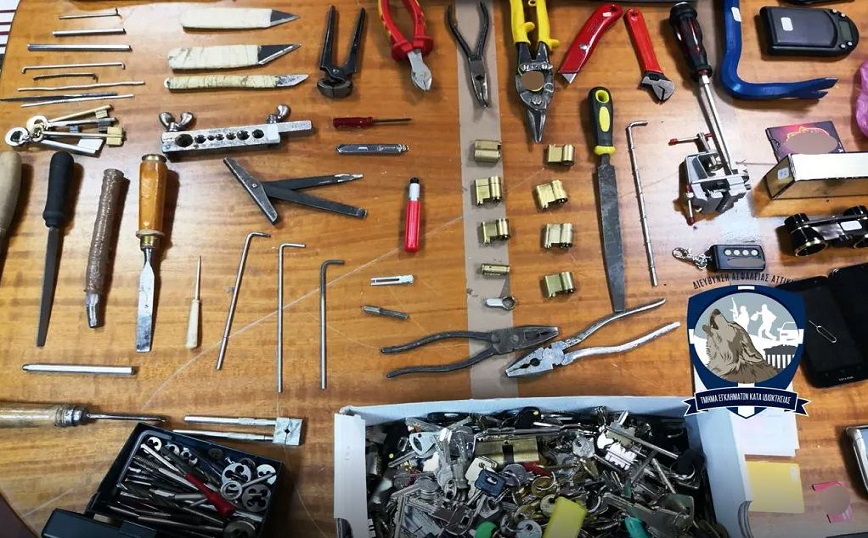 - πλήθος διαρρηκτικών εργαλείων και κλειδαριών,