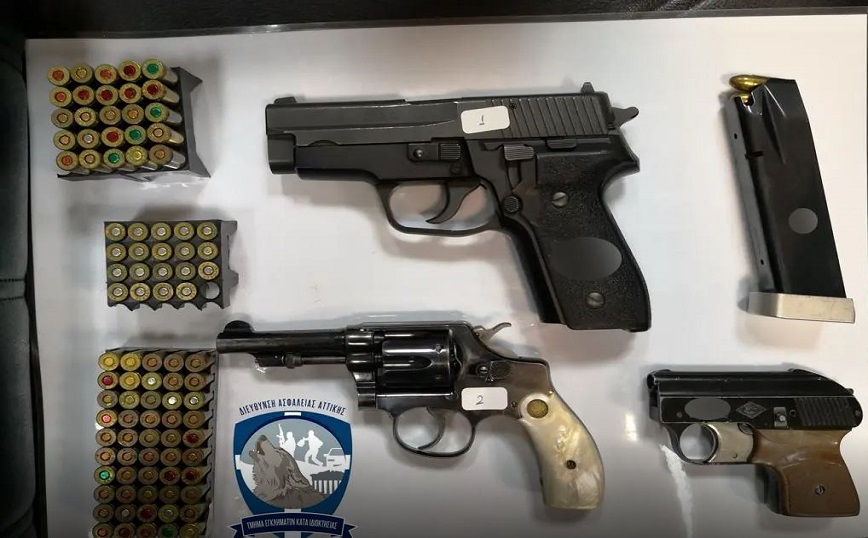 - πιστόλι, περίστροφο και πιστόλι φωτοβολίδων,